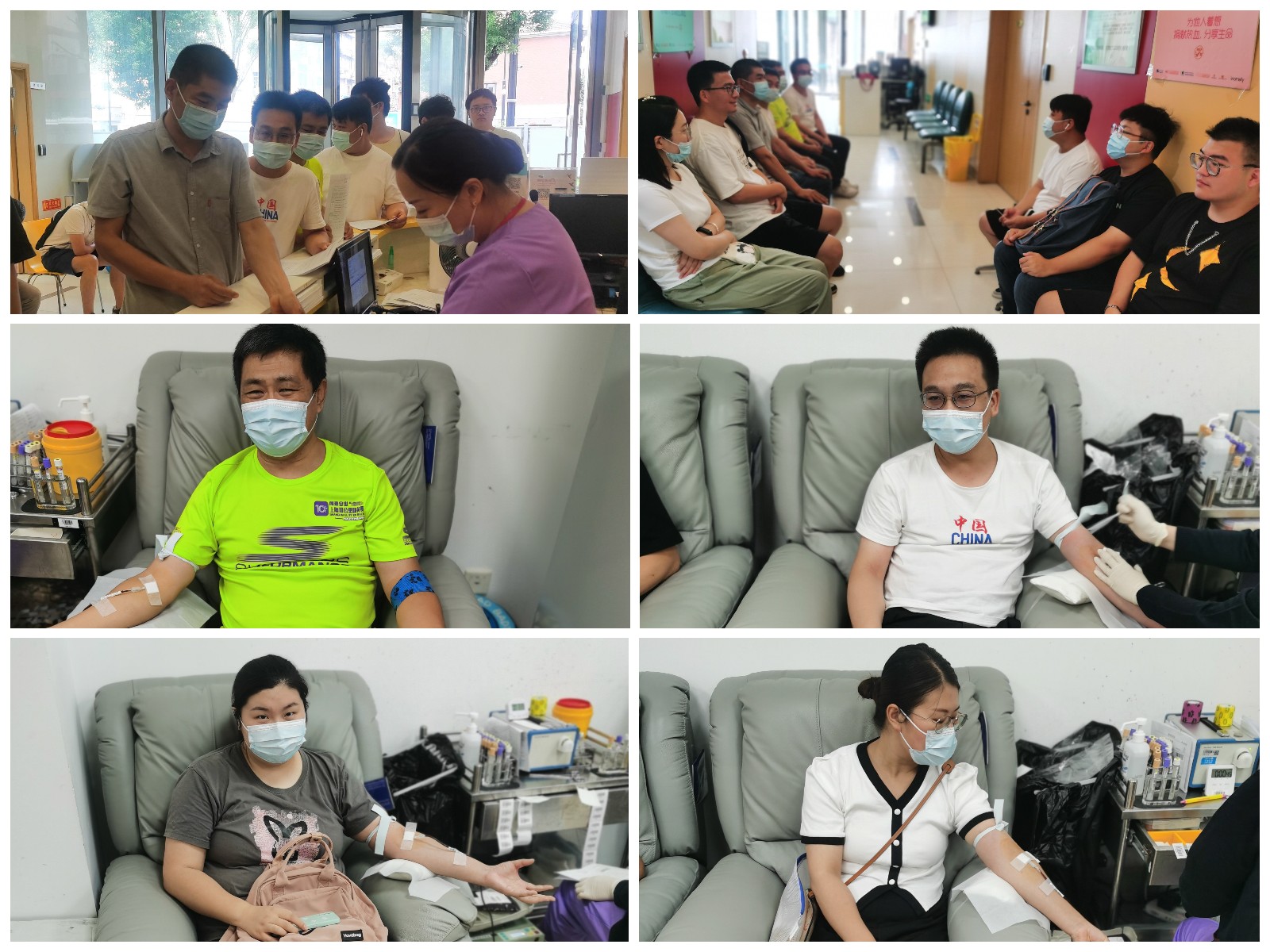 大家按照采血作业程序完成了填表登记、测量血压、采血化验等各项准备作业,依次排队参与献血。