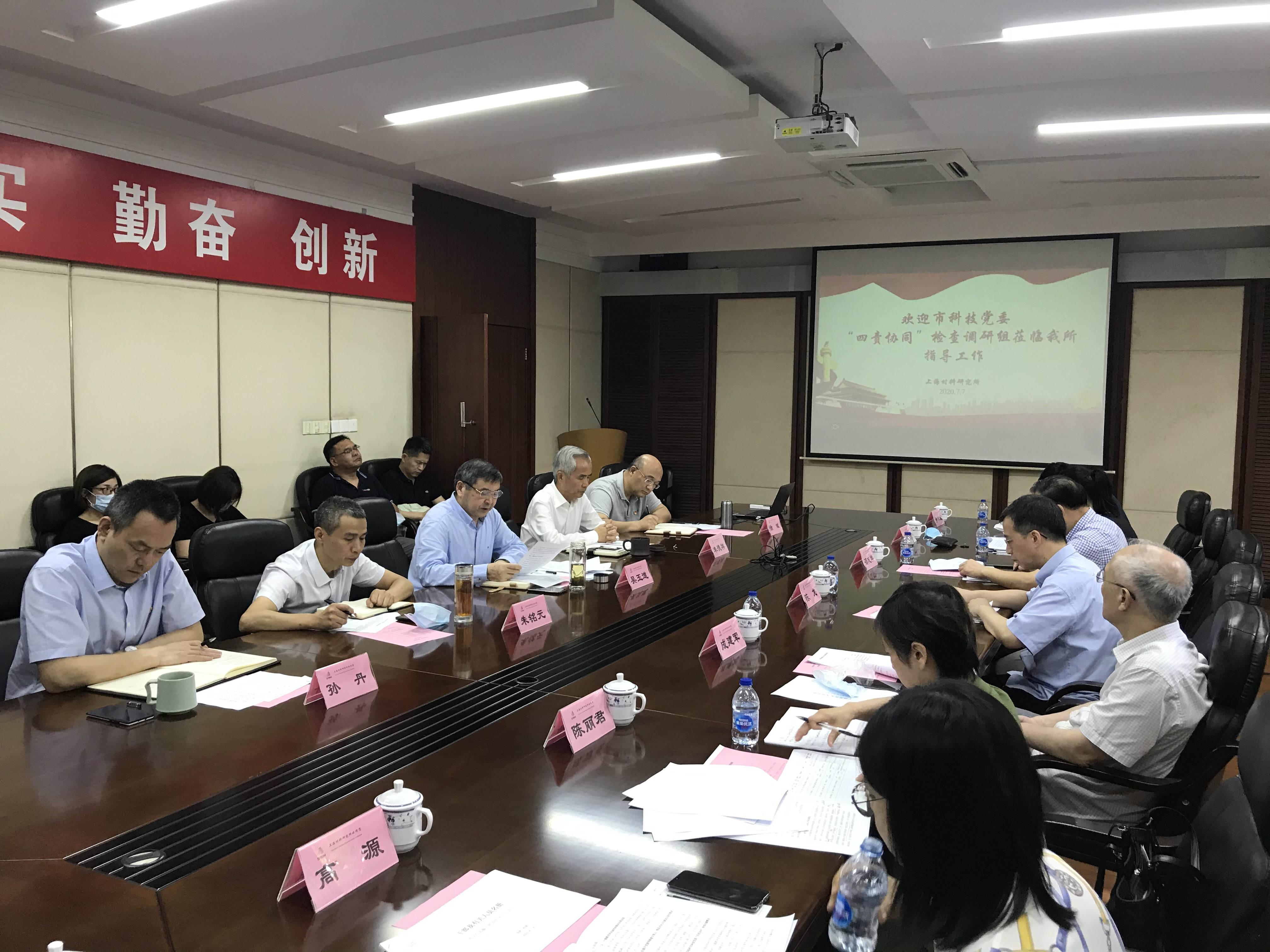 2020年7月7日下午,市科技工作党委副书记陈龙带队来我所开展落实全面从严治党“四责协同”机制检查调研。所领导班子成员、中层正职和支部书记共计28人参加见面会,所长、党委副书记朱德祥主持会议。